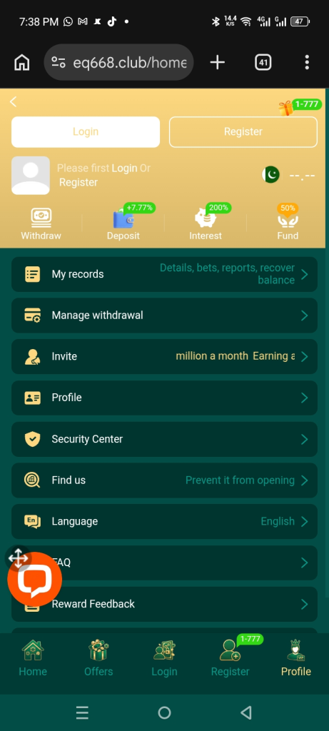 The truth is, many apps that offer real money gaming are not officially regulated in Pakistan. EQ668 game is not a well-known licensed platform, so there are some risks involved.